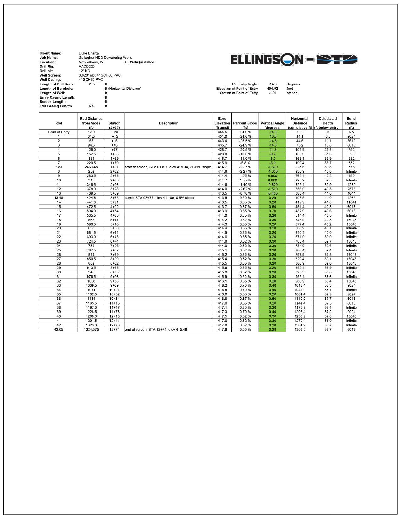 Two wells were navigated with a removable gyroscopic steering tool, and the other six wells utilized a walkover navigation method. The well screens are completed about 45’ below the entry point elevation and average roughly 845’ of screen per well. The total installed length of all eight wells is 8,593’ – making the average total well length 1,074’.