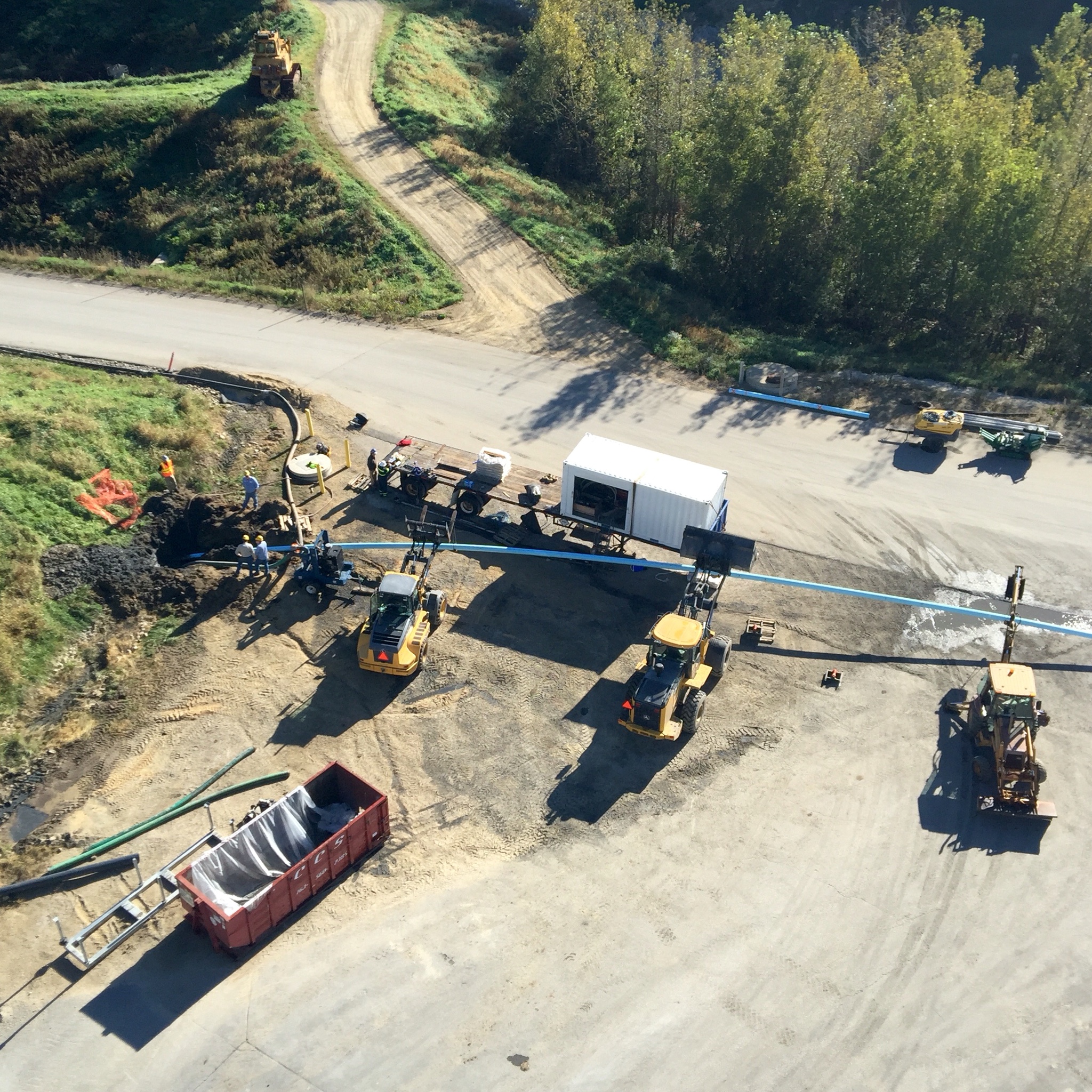DTD drilled and completed one dewatering well at the project site. The well was completed in coal combustion residual (CCR) waste in a lined pond. Most of the material was unconsolidated; however, a compacted zone was encountered, which necessitated the use of a down-hole mud motor for a portion of the drilling.