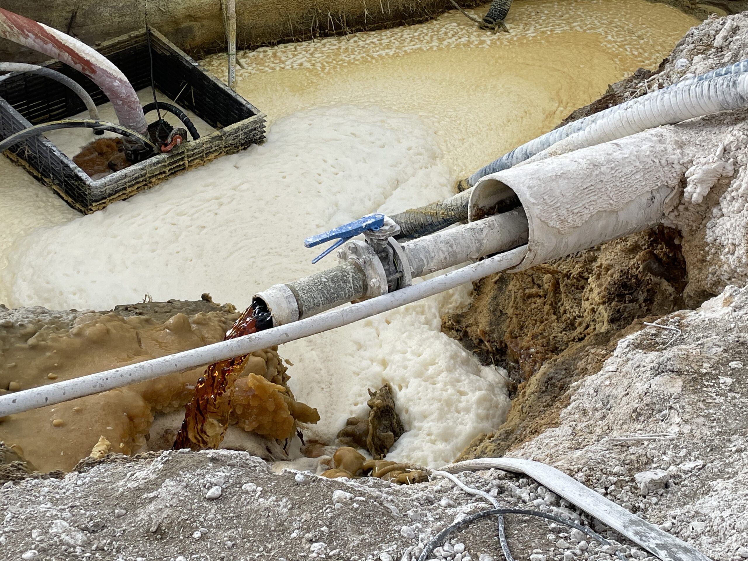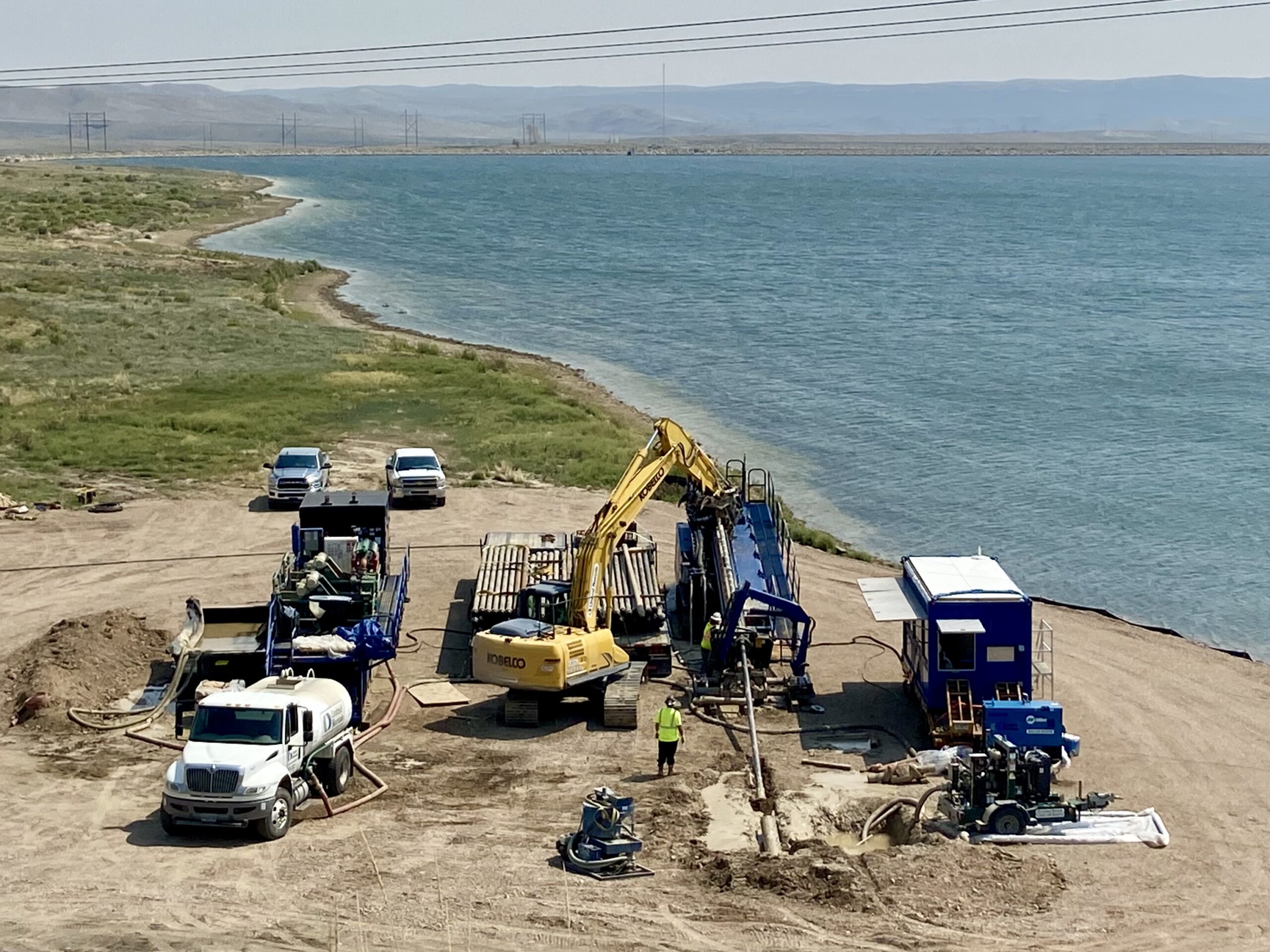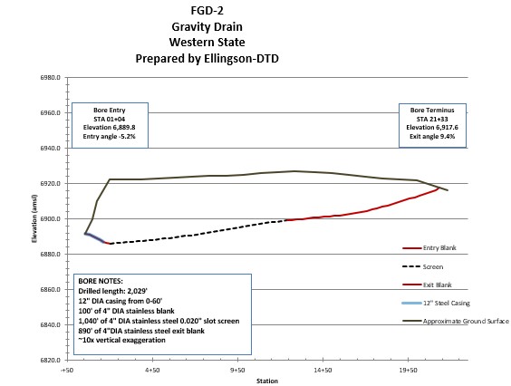 The wells were completed in native formations consisting of sandstone and weathered sandstone materials. Surface casings were set and cemented in place on the entry side. The wells were drilled “uphill” under evaporation and flue gas desulfurization (FGD) ponds and gravity flowed after construction and development.